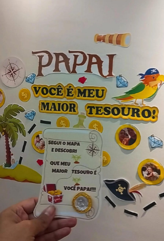 Transforme o Dia dos Pais em uma verdadeira aventura de amor com este painel temático + cartão de lembrancinha que encantam e emocionam!